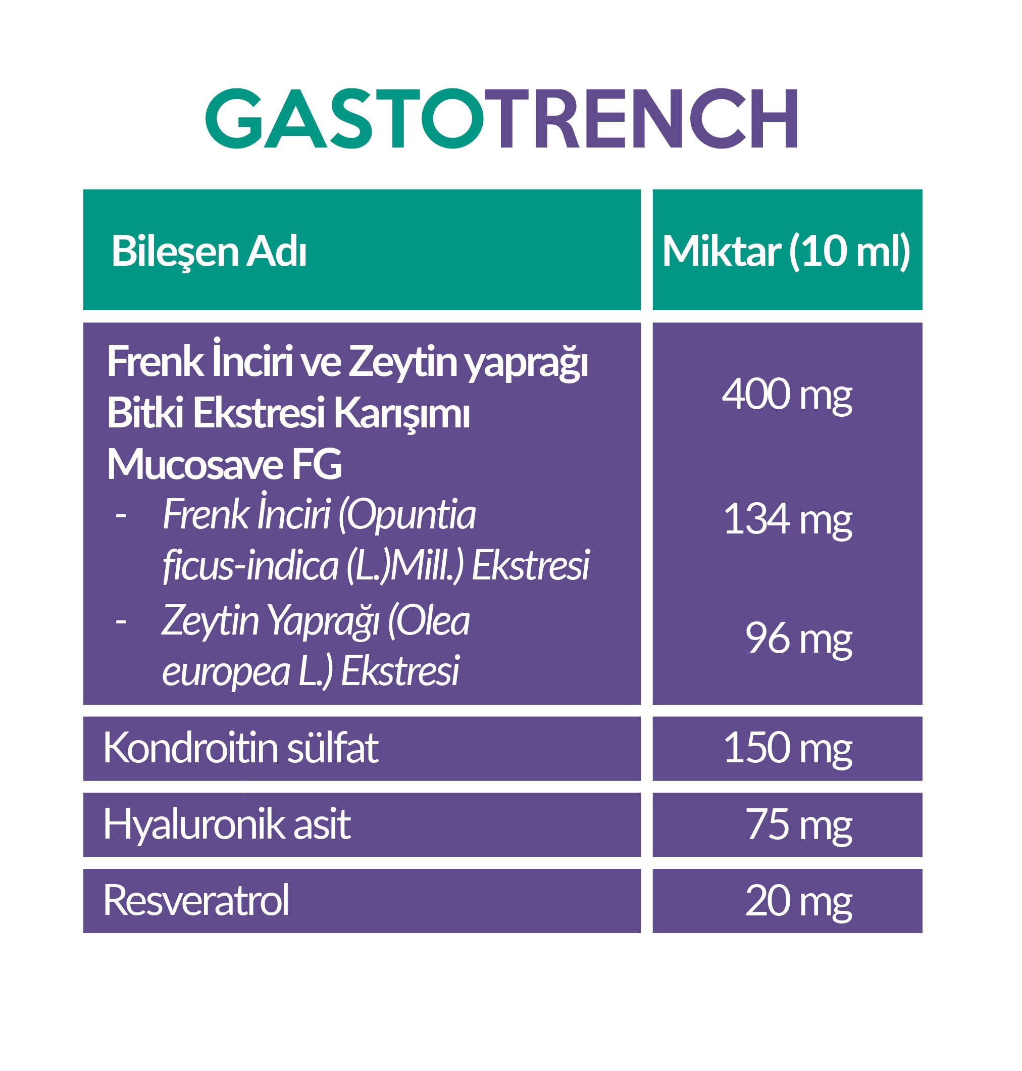 Açıklama: | GASTOTRENCH : Etna yanardağı ( İtalya ) eteklerinde yetişen Frenk İnciri , Zeytin yaprağından elde edilen bileşenleri içeren patanetli MUCOSAVE FG içermektedir. Etna yanardağı coğrafik olarak gece gündüz sıcaklık farkının çok yüksek olduğu bir bölgedir. Bu bölgede yetişen bitkilerin bu sıcaklık farkında hayatta kalabilmek için geliştirdikleri direnç sebebiyle bitklerdeki fitokimyasal içerikler çok zengindir. GASTOTRENCH 150 Ml şurup formülünde Chandroitin Sülfat ve Hyaluronik asit ayrıca Resveratrol da bulunmaktadır. GÜNDE 1 yada 2 ölçek aç yada tok karna tüketilebilir. | |